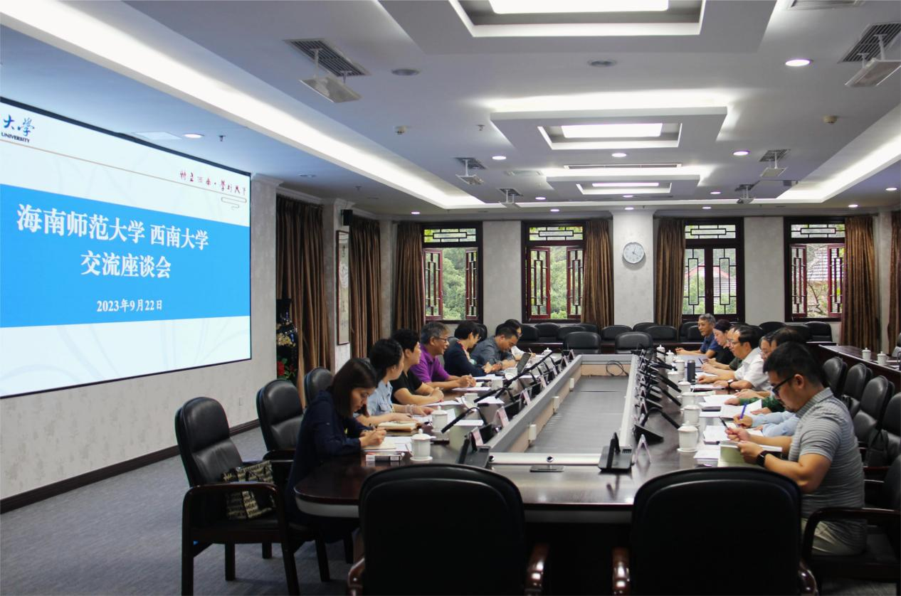 9月22日,海南师范大学党委常委、副校长陈险峰一行来校开展合作交流。西南大学副校长周光明出席交流座谈会,两校相关职能部门和学院负责人参加会议。