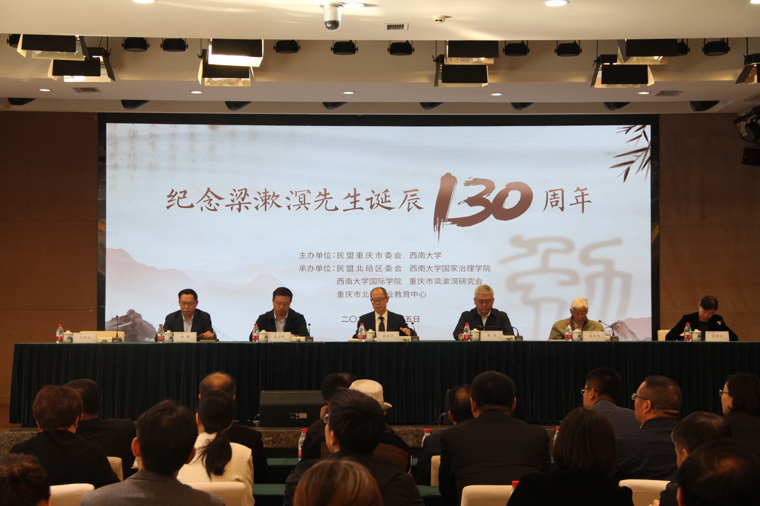 今年是梁漱溟先生诞辰130周年。为传承先贤精神风骨,延续先生学术文脉,10月14日至15日,学校与民盟重庆市委联合举办系列纪念活动。重庆市政协副主席、民盟重庆市委主委、重庆理工大学校长杜惠平,北碚区政协主席董伦,西南大学党委副书记、纪委书记夏玉峰,副校长葛信勇等领导出席相关活动。专家学者、民盟盟员、梁漱溟先生亲属代表和名家大师后人等230余人参加活动。