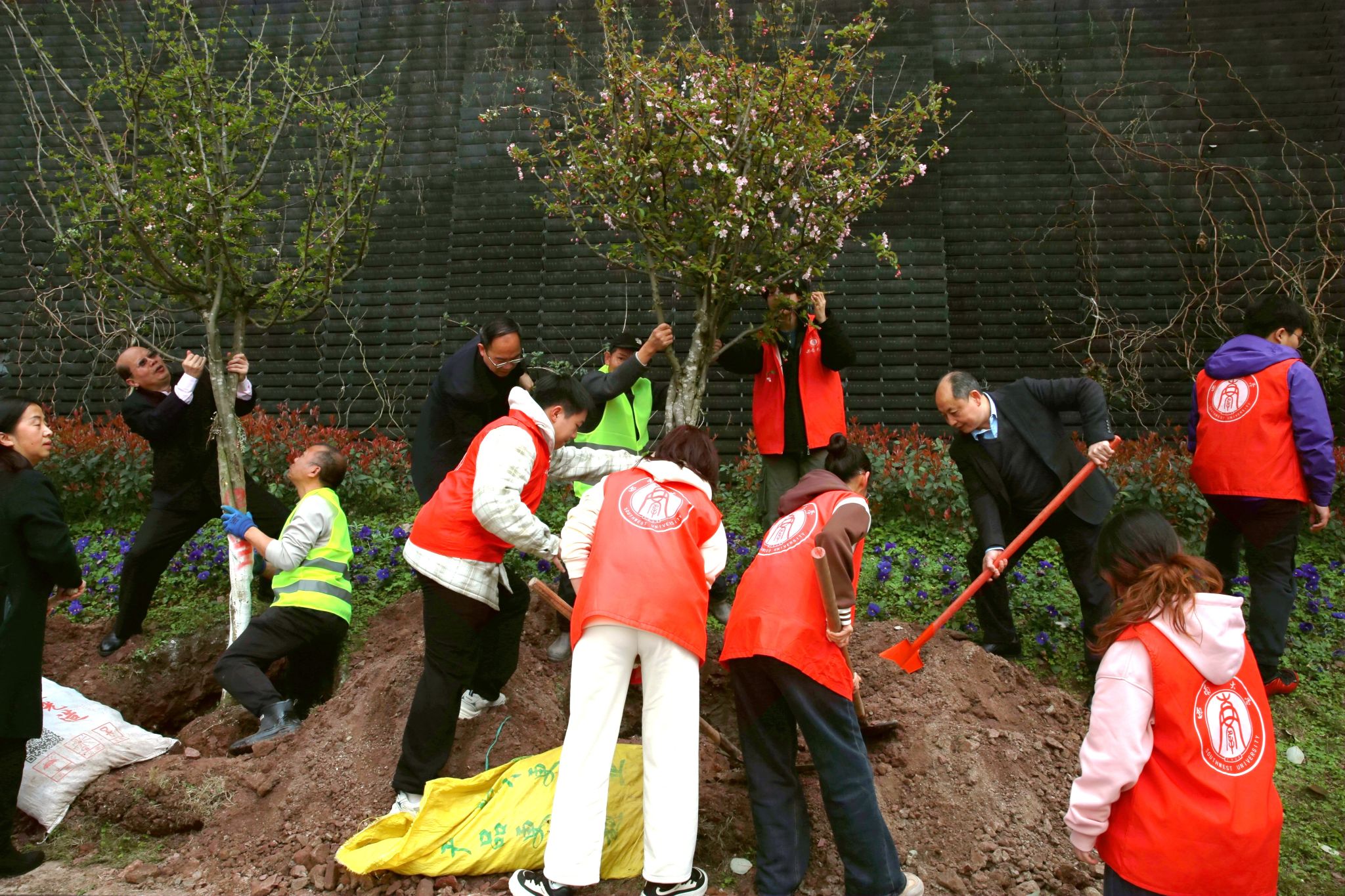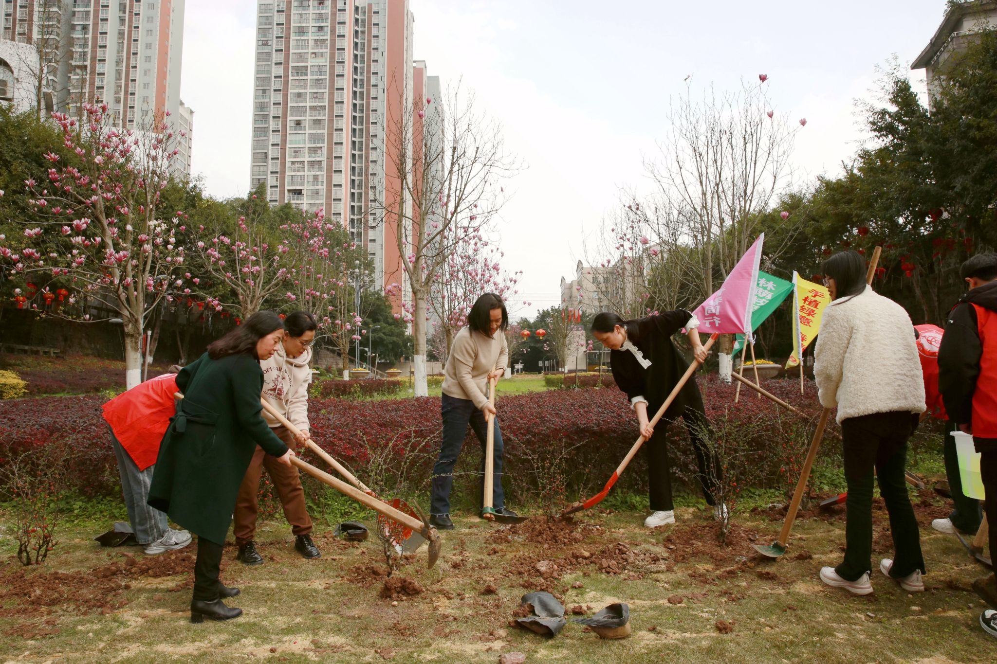 启动仪式结束后,荣昌校区党工委、管委会和后勤集团荣昌校区服务中心党员领导干部带领志愿者们在校园内种植观赏性植物,清除第七教学楼顶层露台内的荒草。大家齐心协力,分工协作,成功栽种三十多棵不同品种的海棠树木,为校园环境注入了更多生机和活力。