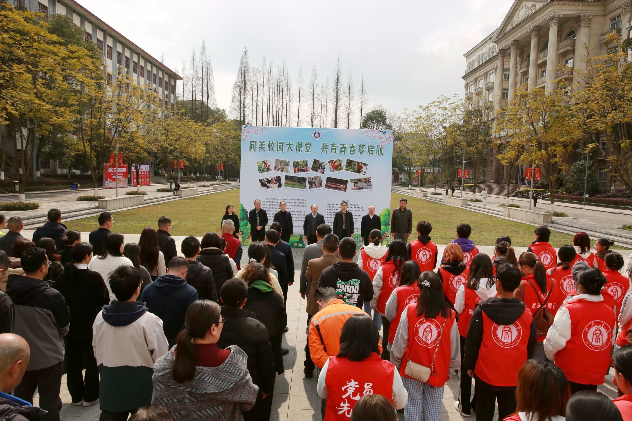 3月12日下午,荣昌校区党工委、管委会和学校后勤集团联合举办“同美校园大课堂 共育青春梦起航”主题劳动实践系列活动。同美校园大课堂特色活动以荣昌校区党工委、管委会“荣之光”党建品牌为依托,启动仪式在校区图书馆前广场举行,荣昌校区党工委、管委会班子成员及相关内设管理服务机构负责人,校区机关党总支书记、学校后勤集团荣昌校区服务中心负责人出席,校区机关各党支部、学校后勤集团党委第七党支部党员教师志愿者以及50余名学生志愿者参加活动。启动仪式由荣昌校区党工委副书记、纪工委书记穆奎主持。