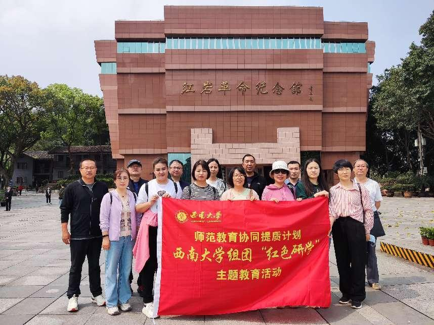 师范教育协同提质计划西南大学组团挂职访学党支部自2022年10月成立以来,在教师教育学院党委的指导和支持下,围绕党的二十大精神和2023年全国两会精神,定期开展了一系列“三会一课”等支部党建活动,取得了较好的效果。“红色研学”主题教育活动是支部主题党日特色活动,支部充分利用重庆市丰富红色文化教育基地和世界文化遗产,深入开展红色教育、革命传统教育和爱国主义教育。通过主题教育活动,组团内全体教师进一步强化了理想信念,增强了党性修养,激发了工作学习热情,丰富了支部“三会一课”活动形式。