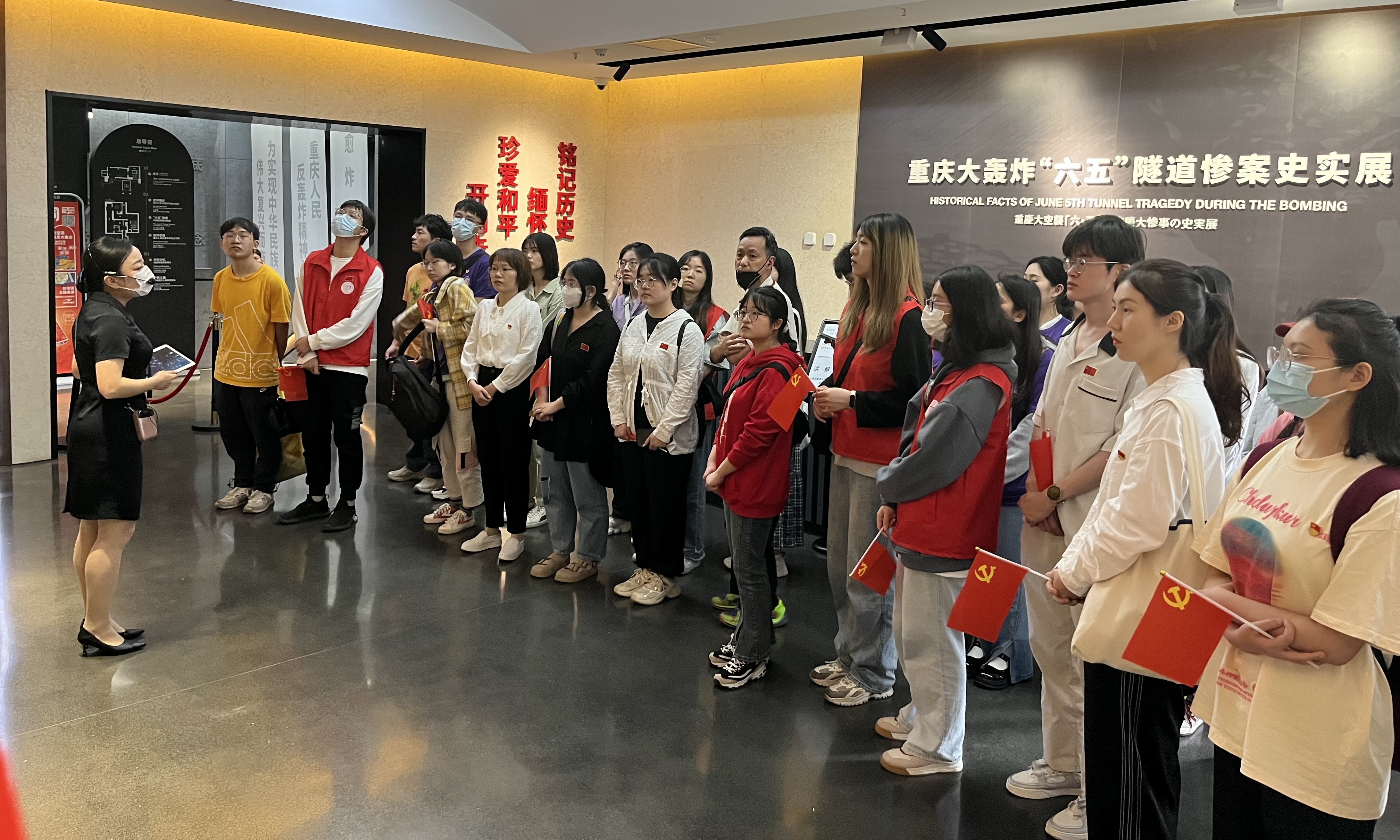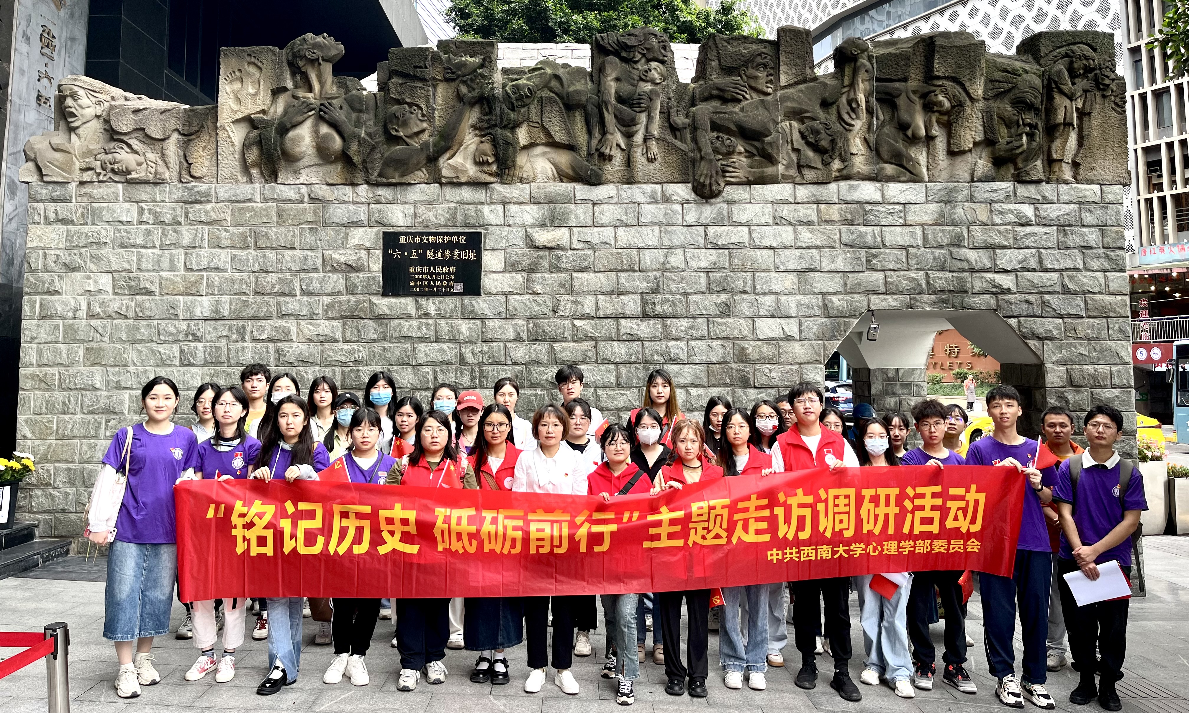 “历史是最好的教科书,也是最好的清醒剂。”习近平总书记多次在重要场合提及要铭记历史、珍爱和平。2023年6月5日,正值重庆大轰炸“六·五”大隧道惨案82周年纪念日之际,心理学部组织党员学生赴“六·五”隧道惨案旧址开展主题教育走访调研活动,深入群众开展调查研究,提升民众对“重庆大轰炸”的认知和关注度。