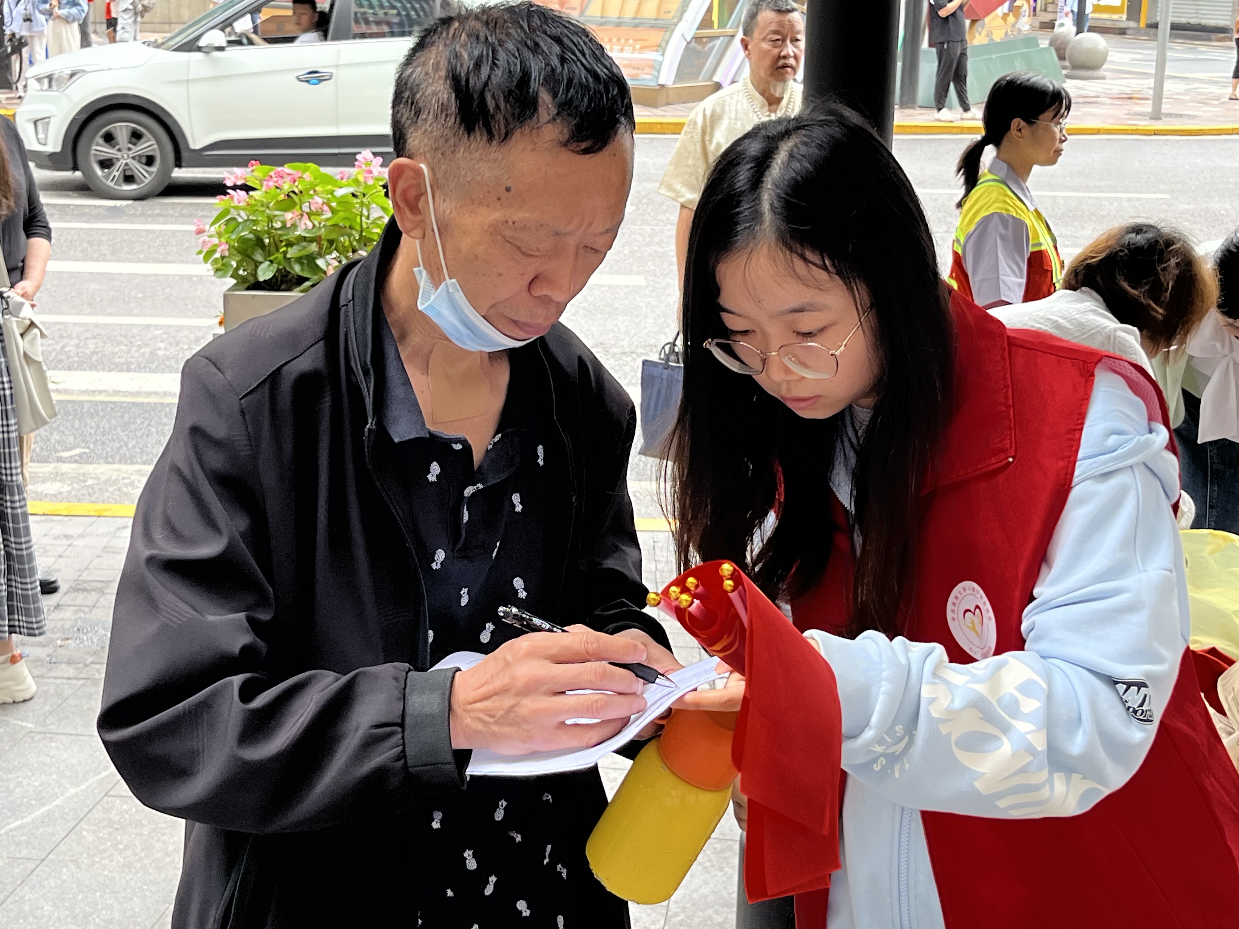 一早抵达旧址,学生们便立即投入到人群中开展调研。通过访谈和问卷结合的形式调研群众200余名,聆听受难者家属亲历悲惨历史发出的沉痛叹息,感受普通民众对战争发起者行非人之径的强烈谴责,大家看到了华夏儿女铭记耻辱继续向前的满腔热血与豪情,也看到了老少子民对如今强大祖国的自信与底气。