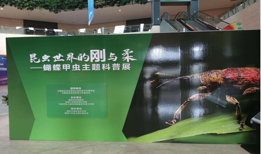 春去秋来又华诞,明月如盘悬中天。在这月满人和,家国团圆的中秋、国庆双节假期期间,为了更好的普及昆虫学知识,让大家了解昆虫文化。由中国昆虫学会昆虫分类区系专业委员会,中国昆虫协会科普工作委员会指导;重庆自然博物馆、西南大学植物保护学院、孙和平院士精密测量重庆科普工作室主办;重庆市植物保护学会,西南大学昆虫爱好者协会协办的昆虫科普活动《昆虫世界的刚与柔——蝴蝶甲虫主题科普展》在重庆自然博物馆一楼大厅顺利举办。