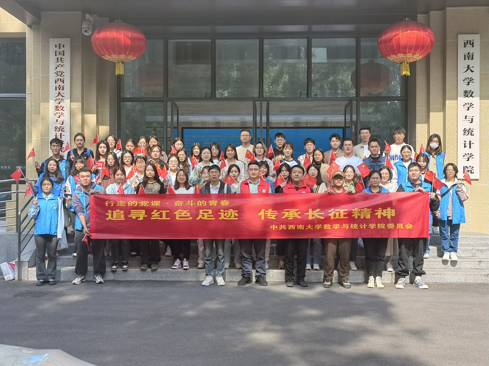 为纪念长征胜利第87个纪念日,西南大学数学与统计学院党员服务团联合各党支部举行“追寻红色足迹 传承长征精神”主题徒步活动。活动以西南大学数学与统计学院为起点,途经川东行署旧址、四世同堂纪念馆(老舍旧居)、卢作孚纪念馆和《新华日报》北碚发行站旧址,旨在以徒步的形式,引导同学们了解身边红色故事,挖掘本土红色文化,重温长征历史知识,传承伟大长征精神。