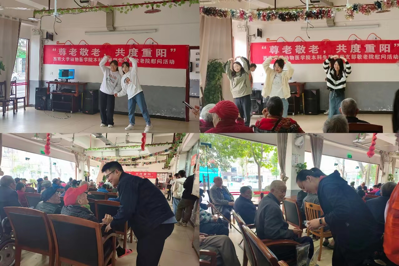 为深入学习贯彻习近平新时代中国特色社会主义思想,进一步深刻领会党的二十大精神,弘扬中华民族敬老、爱老、助老的传统美德。2023年10月22日,动物医学院本科生第四党支部党员同志和积极分子代表在重庆市荣昌区昌元昌州街道敬老院开展了以“尊老敬老,共度重阳”为主题的敬老院慰问活动。