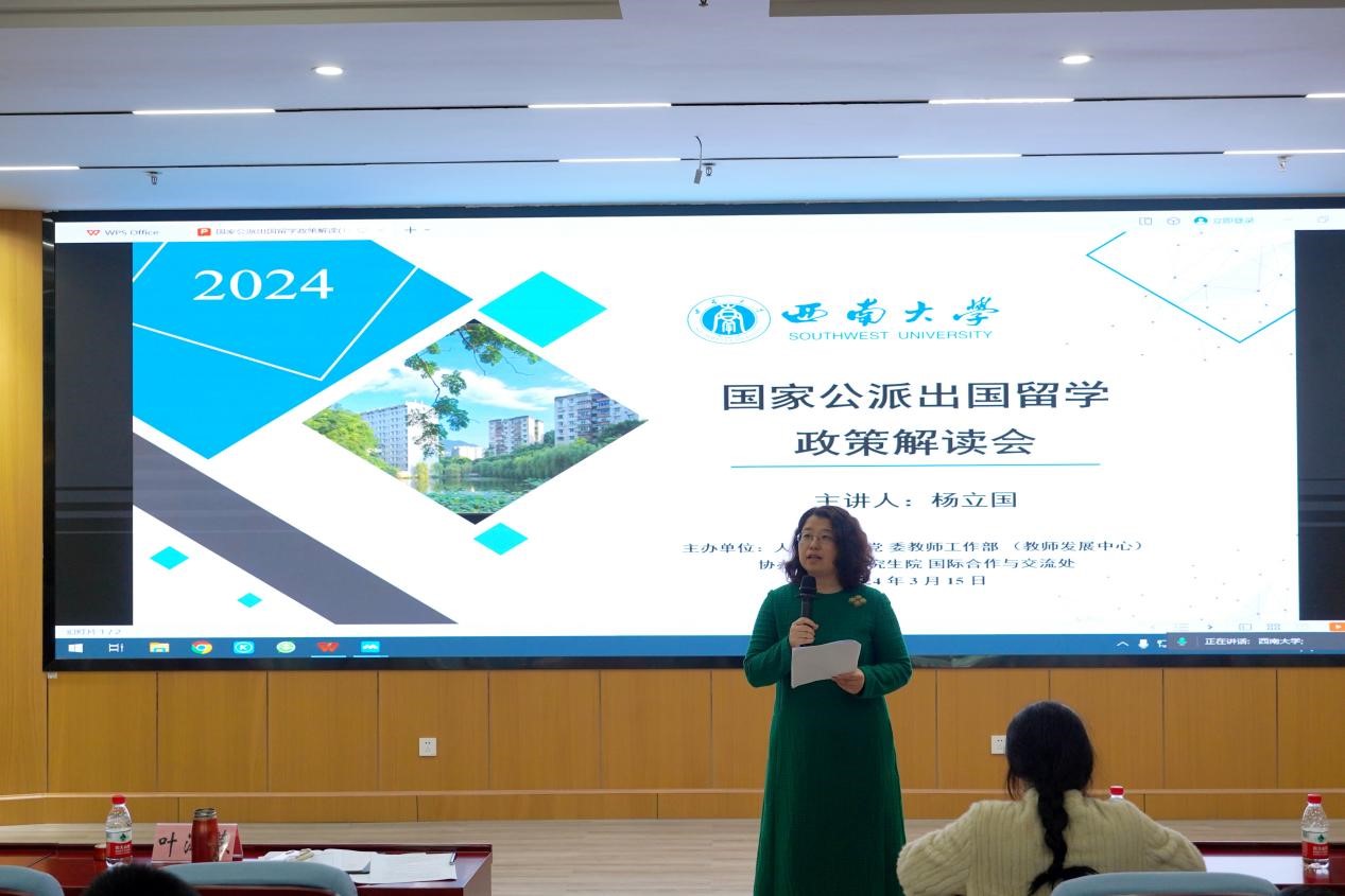 解读会正式开始前,叶海燕对学校教师公派出国留学情况进行了简单回顾。她强调提高国际竞争力是各大高校的主要任务之一,学校对推进师生出国留学工作高度重视,希望可以通过本次宣讲帮助大家深入了解国家公派出国留学政策,推动学校公派出国留学工作有效开展。同时,她还对国家留基委一直以来的指导和关心表示由衷的感谢。