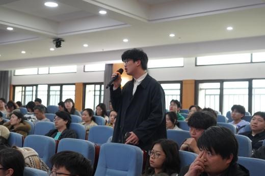 杨立国从多个方面为师生提出建议,包括留学规划、项目选择、语言准备和能力培养等。他特别强调了公派出国项目的申请流程以及关键时间节点,并提醒有意申请的师生尽早做好准备。此外,杨立国还与在场师生进行互动,就大家所关注的问题一一做了解答和说明。