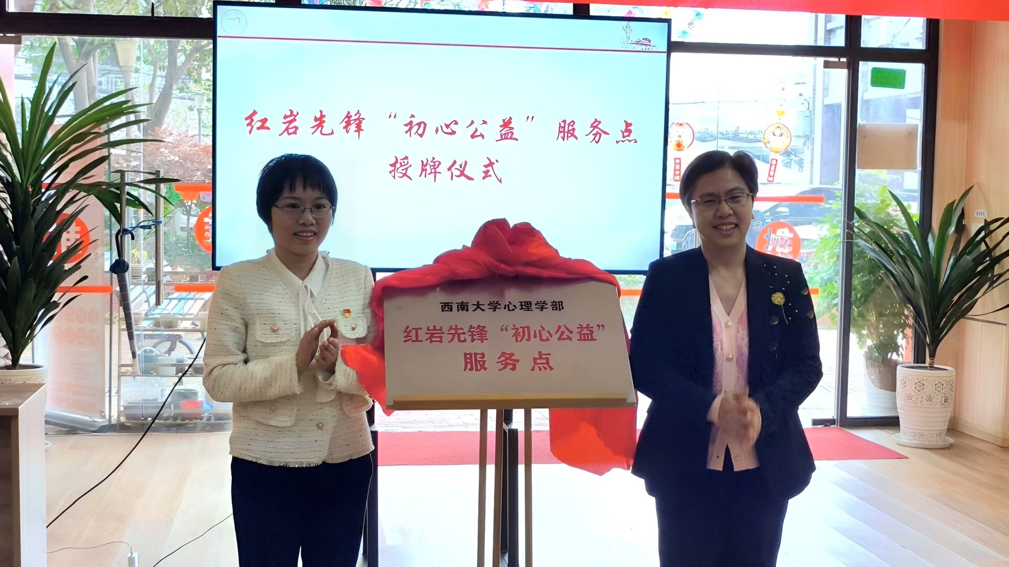 3月30日,西南大学心理学部首个红岩先锋“初心公益”服务点(以下简称“服务点”)在北碚区龙凤桥街道社区养老服务中心举行了隆重的揭牌仪式。这一服务点的成立标志着西南大学心理学部党委与社区养老服务中心的紧密合作,旨在通过专业的心理学知识和技能,为老年人提供更加精准和有效的心理关爱服务。在揭牌仪式上,西南大学心理学部党委代表熊丹与龙凤桥街道社区养老服务中心运营机构代表(美瑞嘉年重庆养老服务有限公司总经理)邹芳签署协议并揭牌。双方的合作将有助于整合资源,发挥各自的优势,共同推动社区老年心理健康服务的发展。