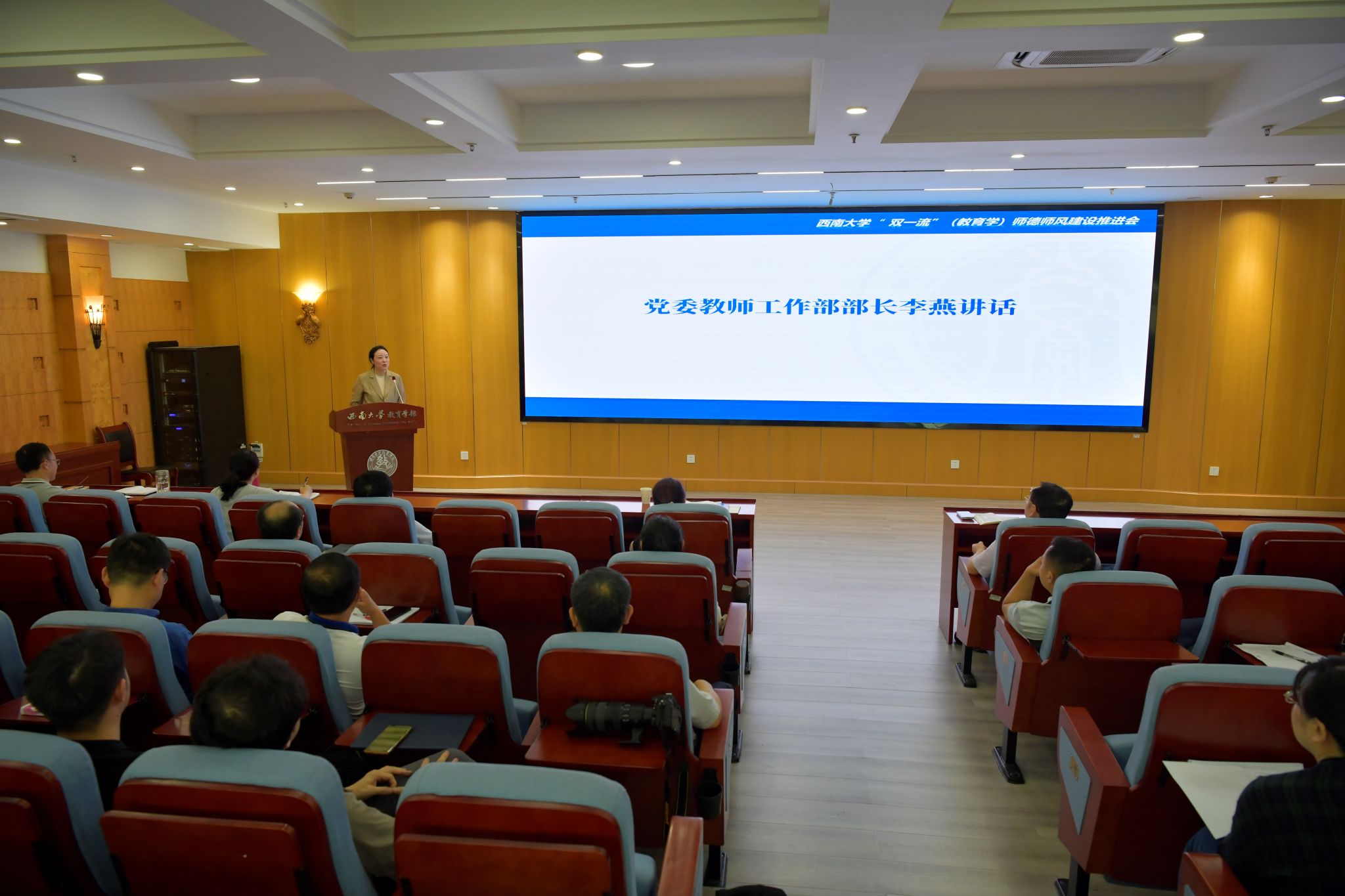 5月10日下午,西南大学“双一流”(教育学)师德师风建设推进会在教育学部802报告厅顺利召开。学校党委教师工作部部长李燕,发展规划与学科建设部副部长、学科建设办公室主任周琪,教育学部全体班子成员和教育学部、西南民族教育与心理研究中心教职工参加会议。会议由学部党委书记周文全主持。